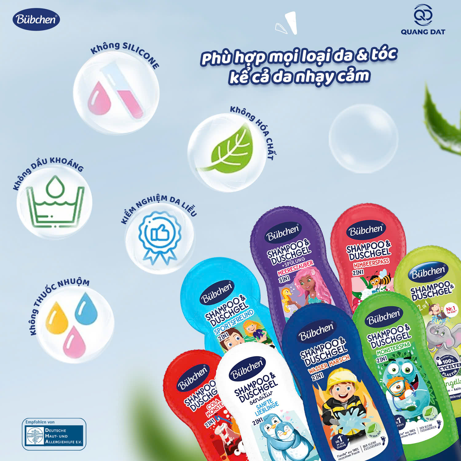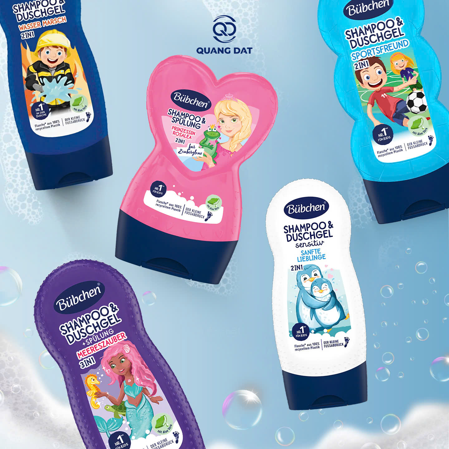 Điểm khác biệt quan trọng trong các sản phẩm của Bubchen chính là sự đồng nhất về chất lượng. Tất cả các dòng sữa tắm gội Bubchen 230ml – từ hương hoa cúc dịu nhẹ, lô hội mát lành cho đến hương thơm kẹo ngọt vui tươi – đều được bổ sung Glycerin.